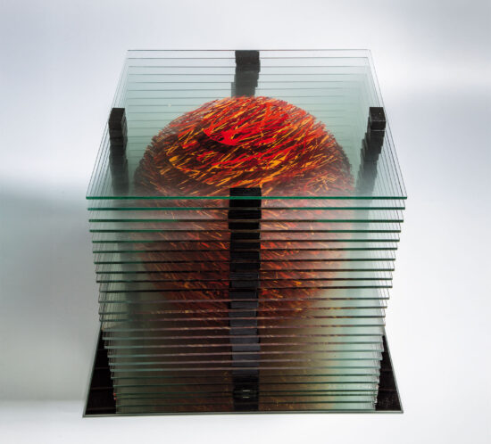 Jiřina Žertová (geb. 1932 in Prag, Tschechoslowakei) hat als Absolventin der Staatlichen Fachschule für Grafik 1950 zum Glas gefunden und bis 1955 bei Josef Kaplický an der Hochschule für Angewandte Kunst in Prag studiert. Nach der kommunistischen Machtübernahme nach Ende des Zweiten Weltkriegs zog in den bildenden Künsten, politisch verordnet, der sozialistische Realismus als Leitrichtung ein. Die angewandten Künste, wie das Glas, entgingen weitgehend der Zensur, da ihre Erzeugnisse als Gebrauchsgegenstände gesehen wurden. Kaplický gelang es, in seiner Glasklasse ein liberales und inspirierendes Klima aufrecht zu erhalten, in dem die freie Kunst eine wichtige Rolle spielte. Viele Künstler, so auch Jiřina Žertová, konnten hier ihre Interessen in einem neuen Material verfolgen: dem Glas. Žertová befasste sich zunächst mit der Glasmalerei und dem Glasschliff. Durch die Zusammenarbeit der Hochschule mit dem Glaswerk Škrdlovice kam sie auch zum mundgeblasenen Hüttenglas. In den 1950er und 60er Jahren entwickelte sie als freie Gestalterin zahlreiche Entwürfe für Gebrauchsglas, von Trinkglasserien über Teller bis zu Vasen, mit denen sie erfolgreich an allen großen internationalen Ausstellungen beteiligt war, die für das neue Ansehen des tschechoslowakischen Glases so wichtig waren. Mit der Hütte in Škrdlovice hatte Žertová eine Absprache getroffen, die gegen Ende der 1960er Jahre zu ersten freien skulpturalen Arbeiten führte: Wenn die Produktion ihrer Gebrauchsgläser vor der veranschlagten Zeit fertig wurde, konnte sie mit den ausführenden Glasbläsern experimentieren. Hier und später in der Glashütte Chřibska entstanden große Plastiken, mit denen sie im Anschluss an Pavel Hlava dem Verhältnis von Außenform und dem Inneren der Glasskulptur nachging. Dabei bevorzugte sie weiche organische Formen und setzte als Kontrast undurchsichtige Materialien wie Metall oder Holz ein. Helmut Ricke sieht diese Arbeiten als einen Höhepunkt der frei am Ofen geblasenen Glasskulptur der 1970er Jahre. Mit der Zeit begann Žertová, diese Mixed-Media-Arbeiten auch mit einer Malerei zu versehen, die sich mit ihren gegossenen und gespritzten Schlieren und Klecksen am Action Painting orientierte. Kritiker ignorierten diese Arbeitsweise zunächst. Dennoch machte Žertová am Ende der 1980er Jahre auf der Suche nach neuen Ausdrucksformen gerade diese Malweise zum Mittelpunkt ihrer Arbeit. Sie begann, auf diese Art Flachgläser zu bemalen, die sie mit Holzklötzen als Abstandhalter horizontal übereinander schichtet. So gelangte sie zu einer neuen Form der bemalten Glasskulptur. Die Scheiben sind mal exakt übereinander geschichtet und mal in einer Linie verschoben, leicht verdreht oder stark winklig zueinander angeordnet. Es entstehen vielfältige luftige Körper, die auf einer verspiegelten Bodenplatte stehen, wodurch die Illusion eines unendlichen Raumes entsteht. Die Malerei beschreibt wie bei einer Computertomografie die Schichten eines Körpers. Manchmal sind die Scheiben bis zum Rand bemalt, häufiger aber formt die Malerei separate Formen im Gesamtkörper der Skulptur, zum Beispiel eine gemalte Kugel in einem Quader aus geschichteten farblosen Glasscheiben. Die Erkundung der sich wechselseitig bedingenden Raumrelationen sind das formale Thema dieser Kunst. Mit den Titeln ihrer Arbeiten zeigt Žertová eine poetische Seite, wenn sie „Luftschlösser“ baut, ein „Karussel“ sich drehen lässt oder zwei „Liebende“ auf Stühle setzt. Für Pavla Rossini sind Jiřina Žertovás Werke „Ausdruck einer starken, reifen schöpferischen Vision, Verkörperung von Sanftheit und eines offenen Geistes“. Uwe Claassen