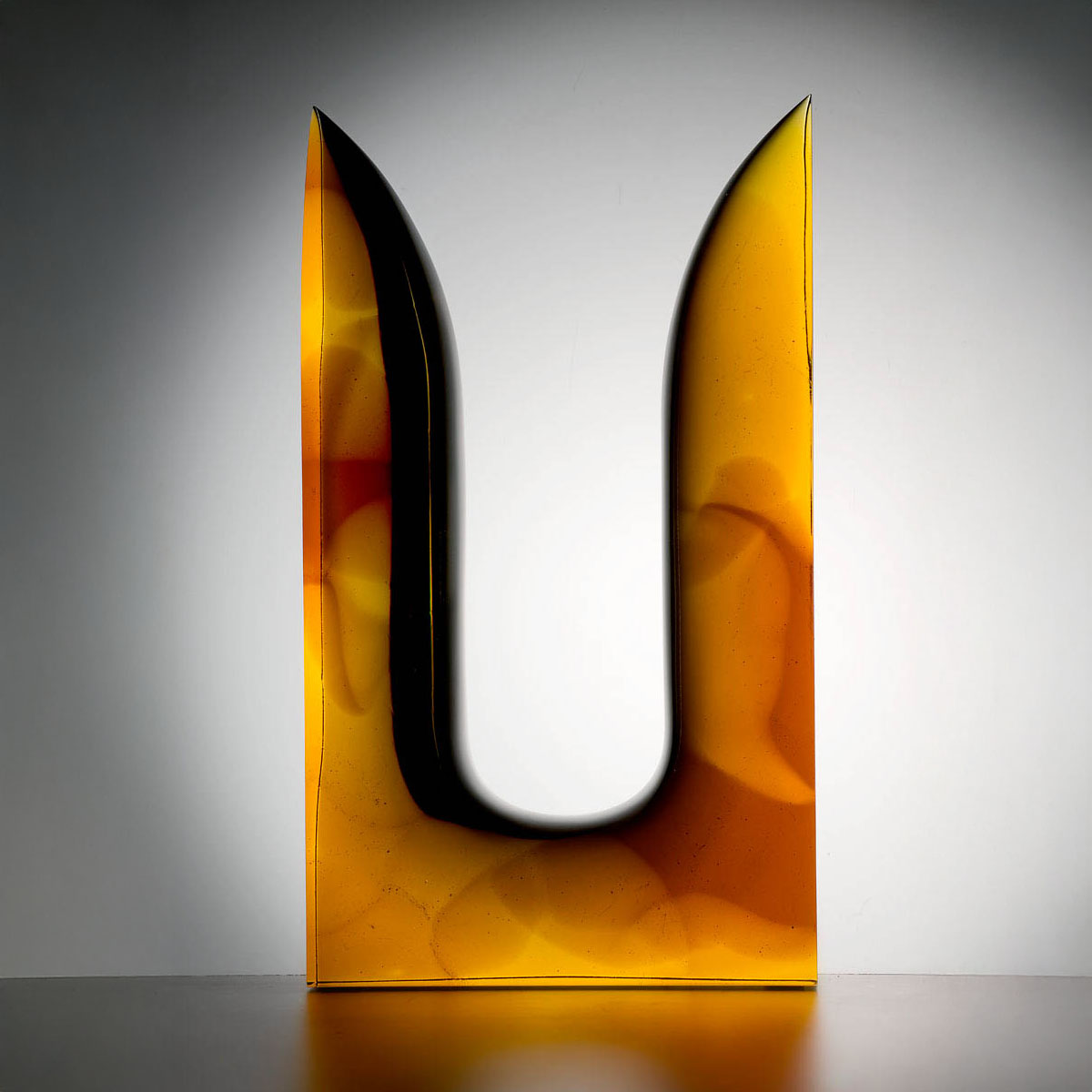 Bernsteinfarbenes Glas, formgeschmolzen, geschliffen und poliert