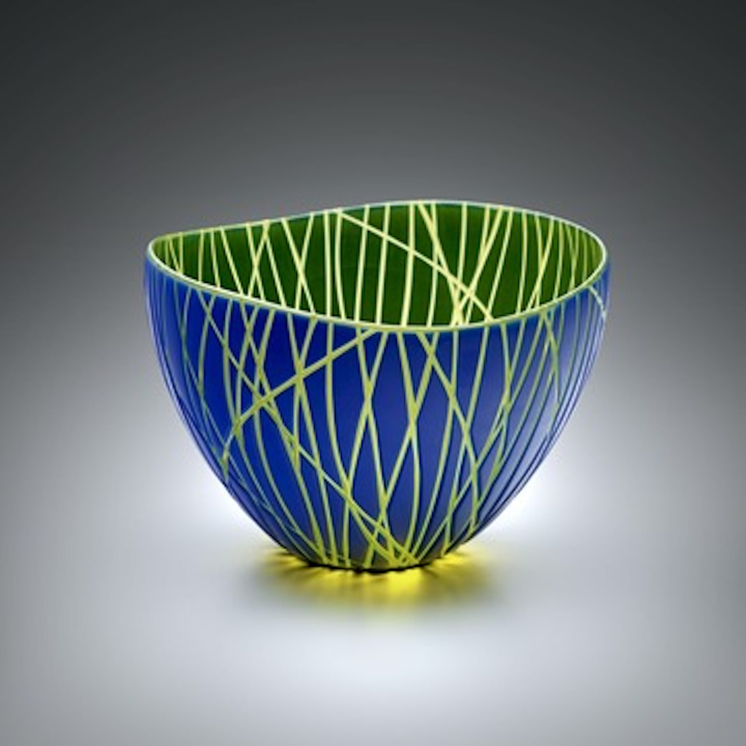 Monica Guggisberg und Philip Baldwin zählen zu den neu gewonnenen Designern, die in den 1990er Jahren frei für Venini arbeiteten. Beide lernten sich Ende der 1970er Jahre an der Orrefors Glasschule kennen. Seitdem arbeiten sie miteinander und betreiben gemeinsame Werkstätten (siehe den Eintrag Philip Baldwin / Monica Guggisberg). Zu Beginn der 1980er Jahre, einer Zeit, in der das freie Studioglas die Szene dominierte, entschieden sie sich, in ihrem Studio designorientiert zu arbeiten: Handwerklich gefertigte Kleinserien schöner Gebrauchsobjekte wurden ihr Thema. Doch schon bald erkannten sie eine Reihe von Einschränkungen. Das betraf einerseits das Publikumsinteresse, das bei der Studioarbeit eher freie Arbeiten erwartete. Zum anderen betraf es die besseren Fertigungsmöglichkeiten, die in der industriellen Manufakturproduktion gegeben sind. Seit 1985 kam es zur Zusammenarbeit mit verschiedenen Unternehmen wie Rosenthal, Steuben Glass und seit 1995 mit Venini. In ihren für Venini geschaffenen Entwürfen vereinigen sie venezianische und schwedische Einflüsse. Die Farbigkeit und Regelmäßigkeit der Form entspricht eher skandinavischen Traditionen, während die Oberflächenbehandlung durch Schnitte und Schliffe wie den hammerschlagartigen „Battuto“ auf venezianische Vorbilder von Carlo Scarpa zurückgeht. In ihrem eigenen Studio fertigten Guggisberg und Baldwin auch weiterhin Designarbeiten, zunehmend aber auch freie Arbeiten als Unikat und Installationen, die mittlerweile das Werk der beiden dominieren.